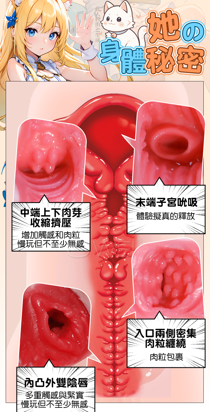 貓寶妹妹. 可愛軟萌雙層陰唇 擬真吮吸子宮腔 果凍感雙色自慰套