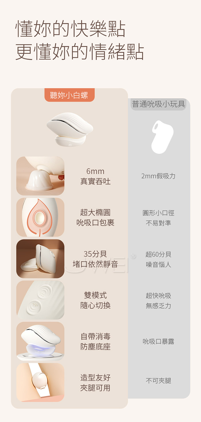 EROCOME伊珞.Conch 小白螺 8頻吸震雙模式慢玩 紫外線滅菌 靜音深吻吮吸跳蛋