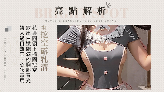 | 女僕角色扮演服|滾邊蕾絲・兩側挖空・翹臀剪裁開襠連身衣三件組