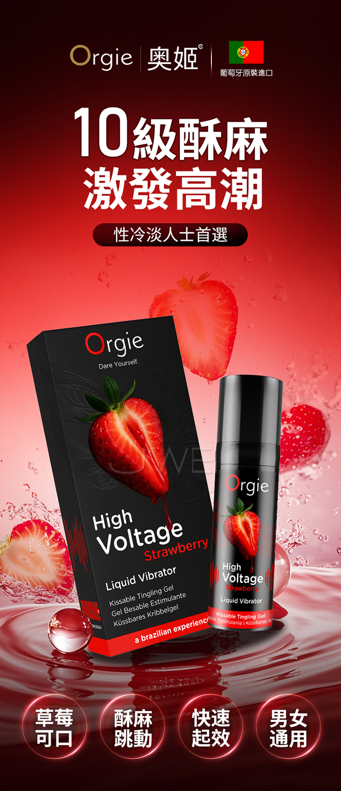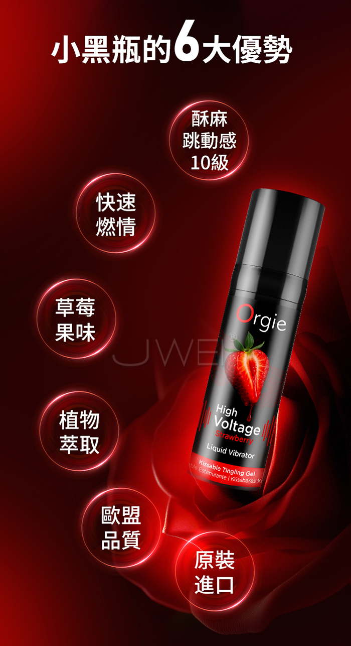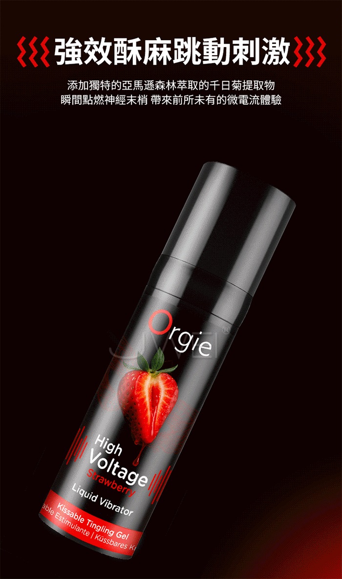 葡萄牙Orgie.Sexy Vibe! High Voltage Strawberry 10級酥麻小黑瓶快感增強液 15ml【草莓】