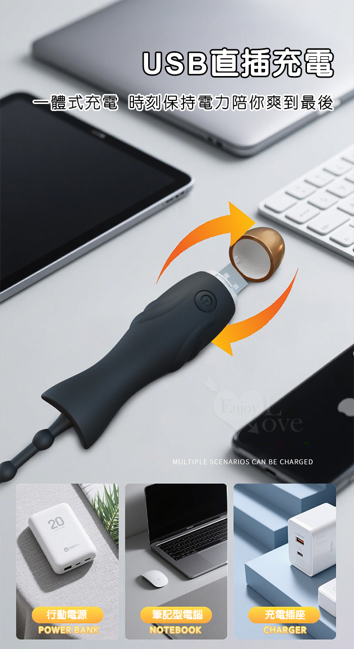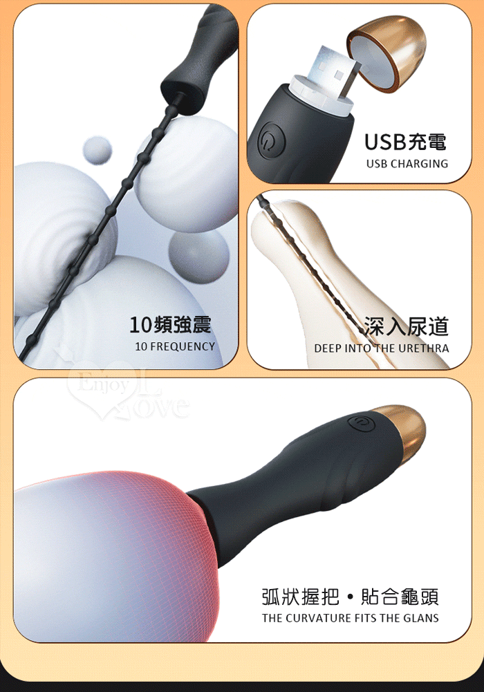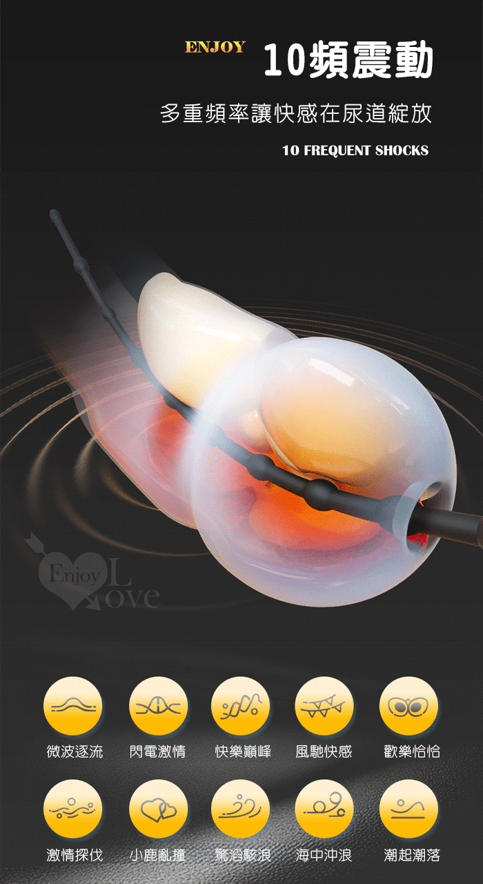 ENJOY 10細珠馬眼棒~輕鬆觸腺10變頻震動深度拉珠刺激 - 可插入15公分