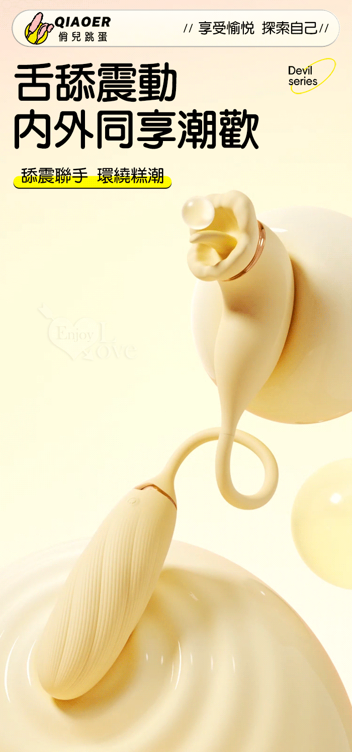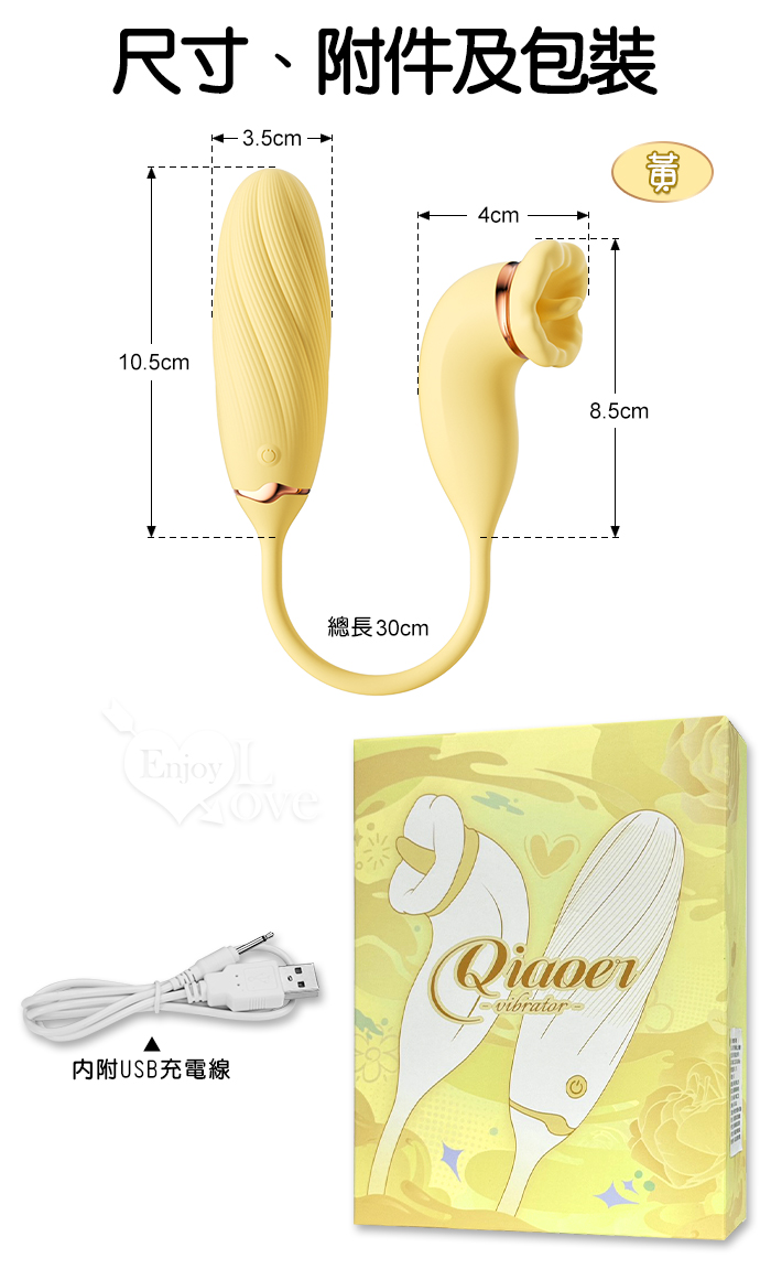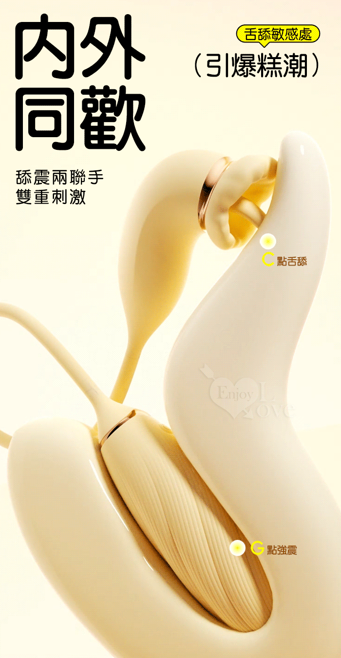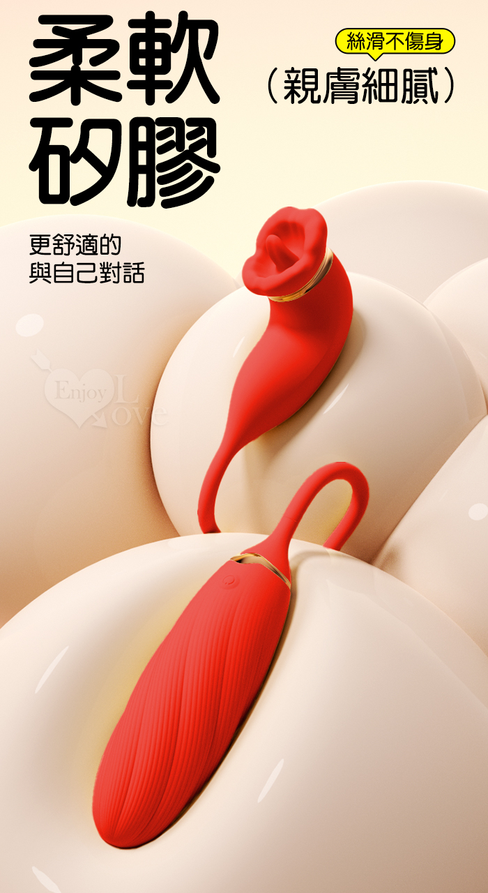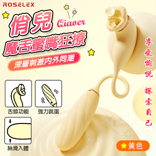 | ROSELEX 俏兒 ‧ 魔舌蜜嘴狂撩+長跳蛋 舔震聯手雙組合按摩器﹝花樣玩法/10頻強震/內外同享潮吹/親膚矽膠﹞黄
