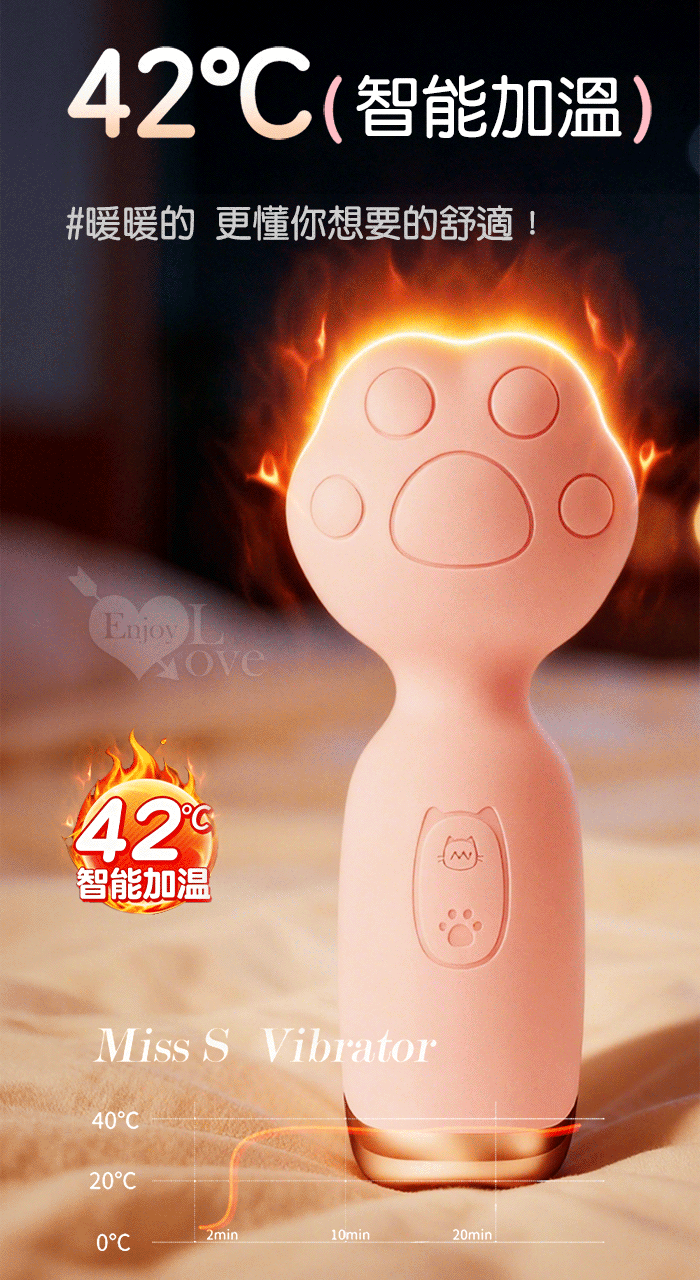 ROSELEX 萌爪AV棒 ‧ 可愛小貓爪加溫震動棒-10頻震動陰蒂刺激調情自慰 - 粉