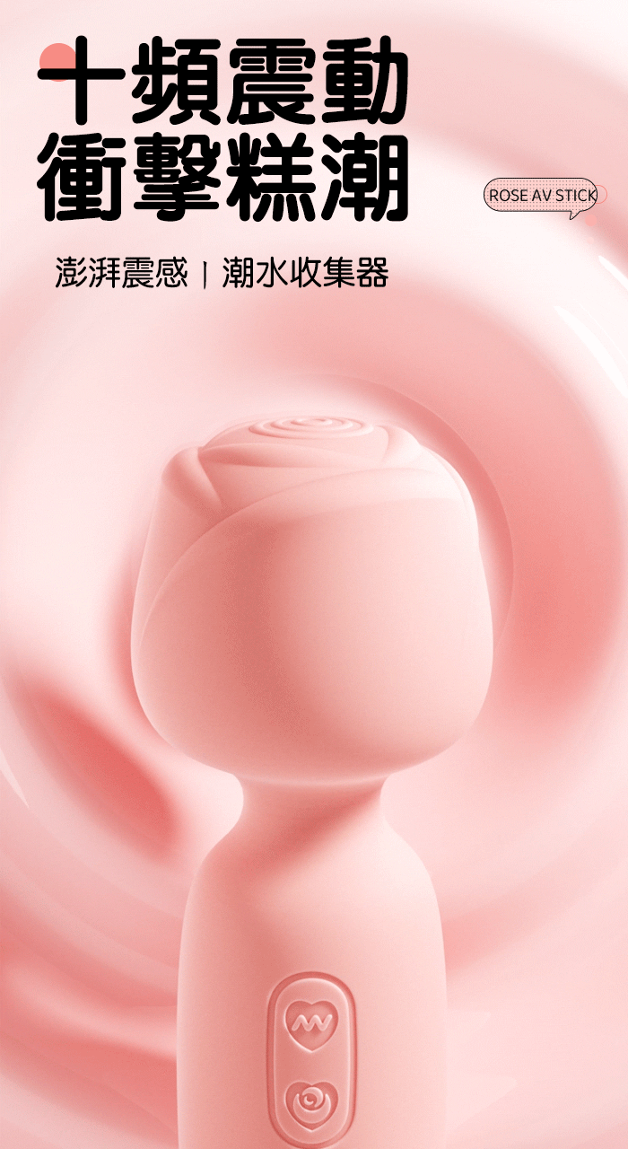 ROSELEX 玫瑰AV棒 ‧ 智趣潮玩10頻震撼衝擊 小巧随身360度彎曲加溫AV棒 - 粉