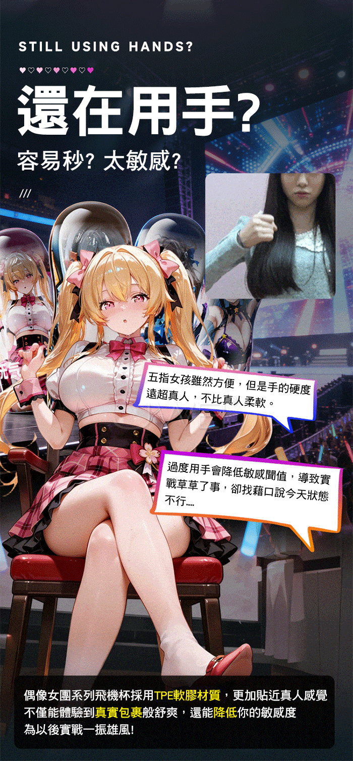 偶像女團系列飛機杯採用TPE軟膠材質,更加貼近真人成覺