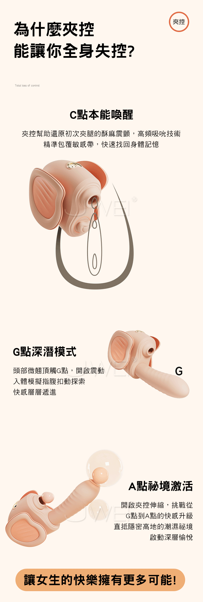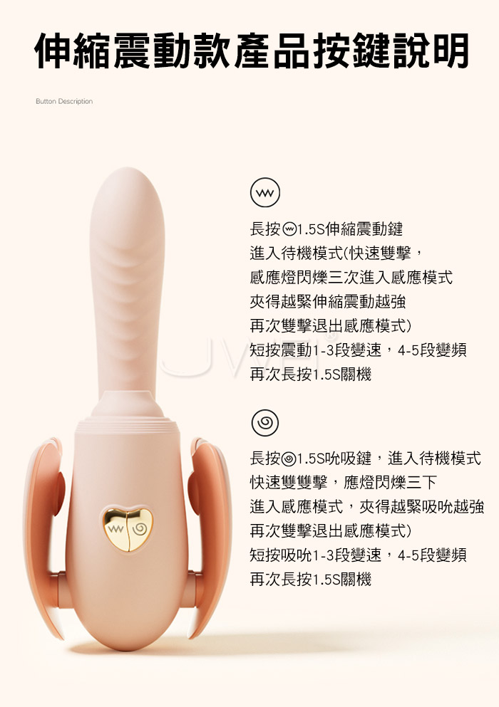 ►您現在的位置:首頁>夾控.5x5頻伸縮吮吸強震 夾腿感應智能遠控自慰按摩器【伸縮款】