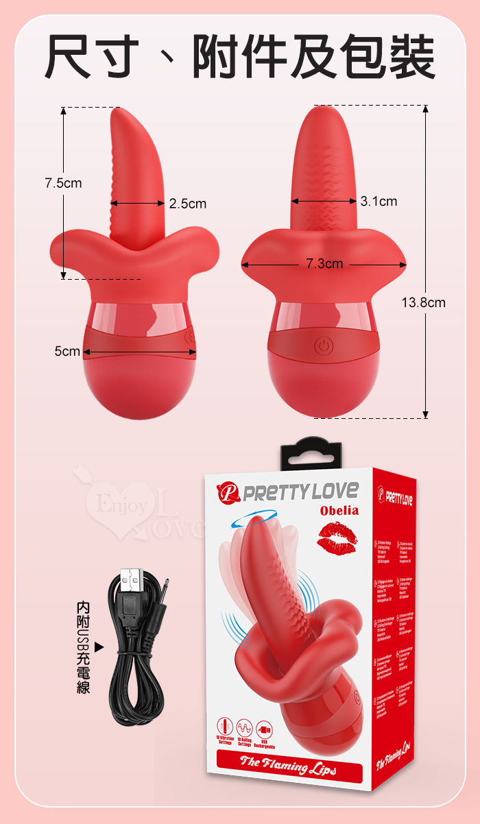 ►您現在的位置:首頁>派蒂菈 ‧ Obelia 奧貝利亞 10頻巧舌红唇360°狂擺+10頻震動按摩器﹝軟糯Q彈材質+USB便捷充電﹞