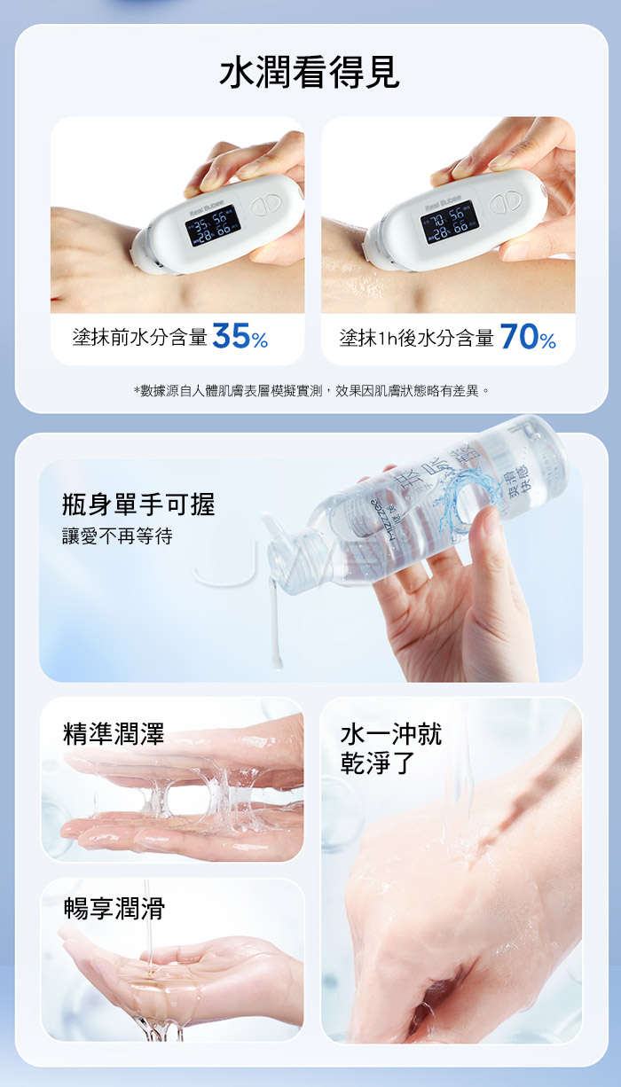 保濕水溶配方,久潤舒適,一抹順滑 給你看得見的水潤