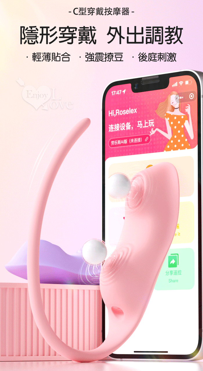 ►您現在的位置:首頁>ROSELEX 勞樂斯 ‧ C型穿戴跳蛋 10頻震動隱形護墊造型按摩器 - 可手機APP遙控﹝具兩種操控模式﹞紫