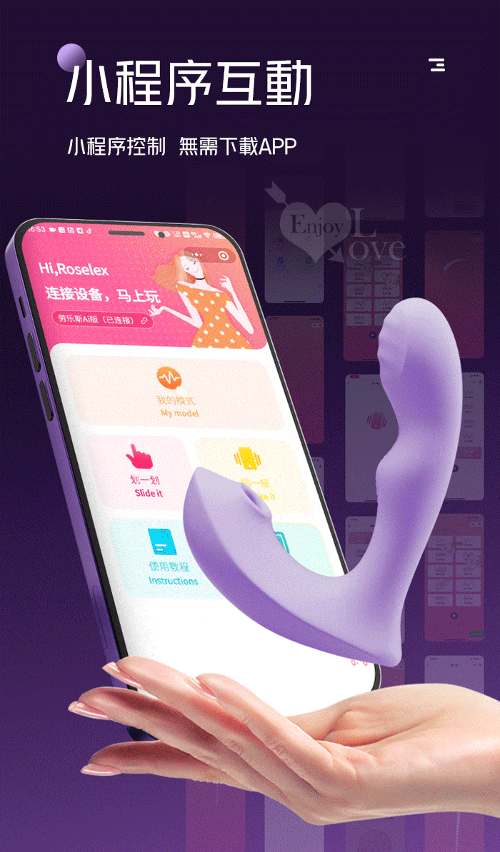 | ROSELEX 勞樂斯 ‧ 覓喜 10頻內外刺激吸吮震動隱形穿戴按摩器 - 手機APP遙控﹝具兩種操控模式﹞紫
