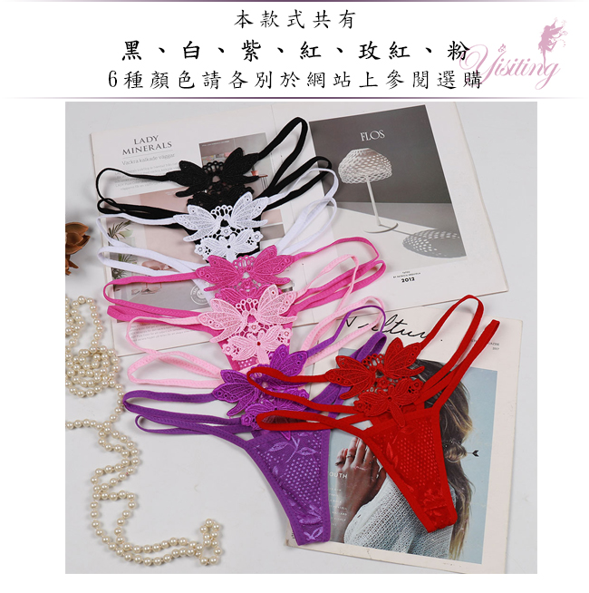 甜蜜舞動!蝴蝶雙飛彈力細帶花卉網紗美臀T字褲﹝黑﹞