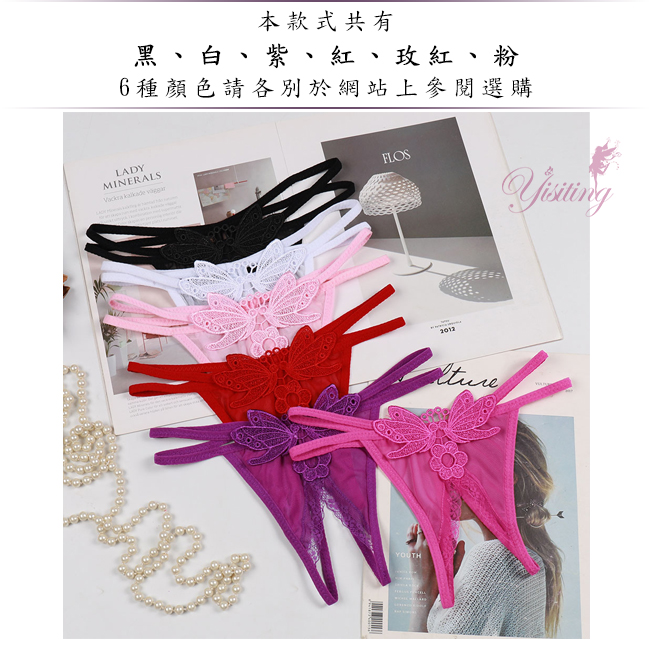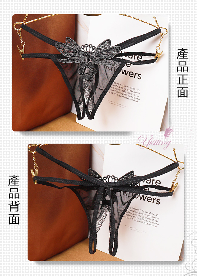 | 迷情綻放!雙彈力帶蝴蝶刺繡誘人露臀開襠丁字褲﹝黑﹞