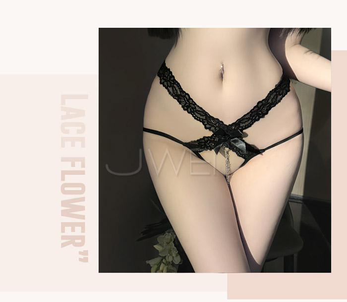 | 愛鏈之夜.圓環鏈條勒臀純欲蕾絲花邊開檔內褲【黑】