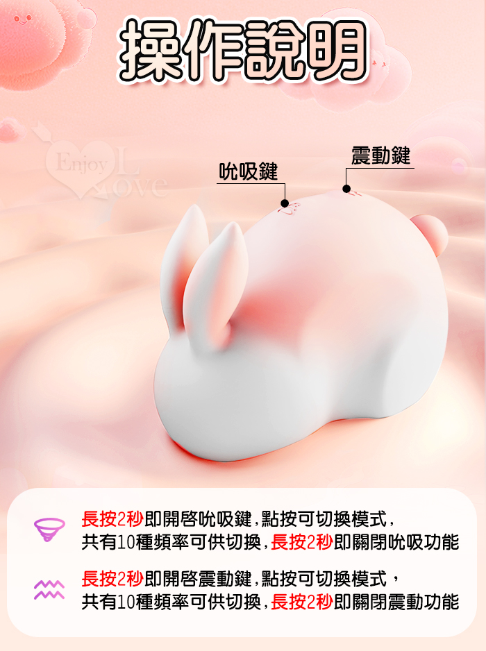 | YEAIN夜樱 ‧ BOBO 啵啵兔 深層吮吸+拍打+震動來寵按摩器~迷漾白漸變粉色