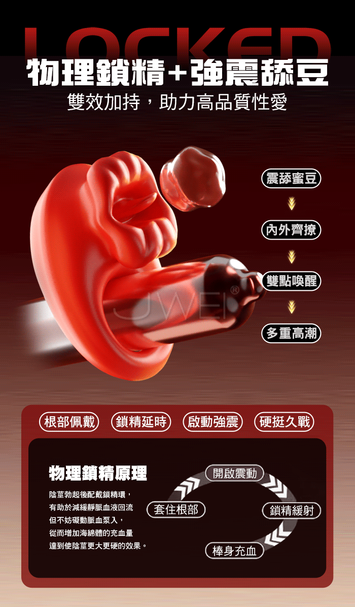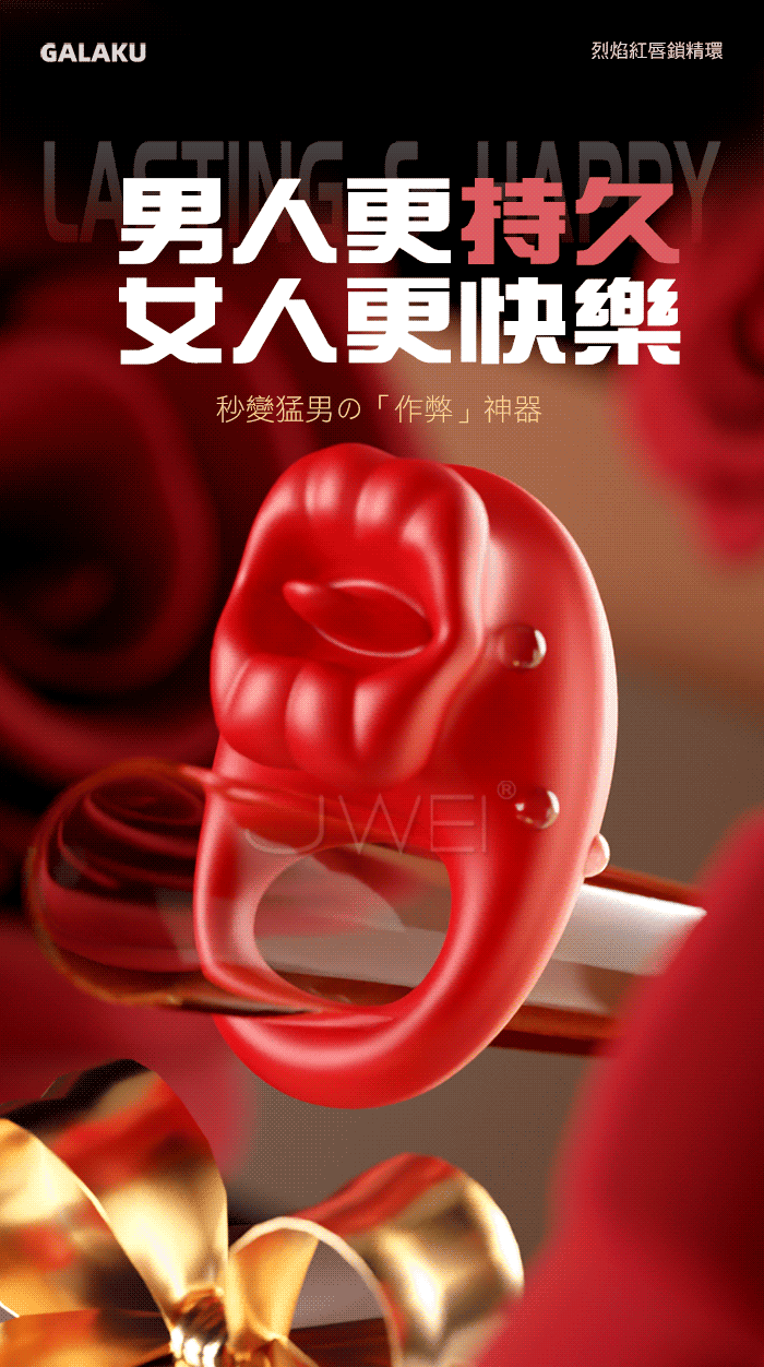 | GALAKU.烈焰紅唇 10頻酥麻強震 邊啪邊震 APP智控震動鎖精環