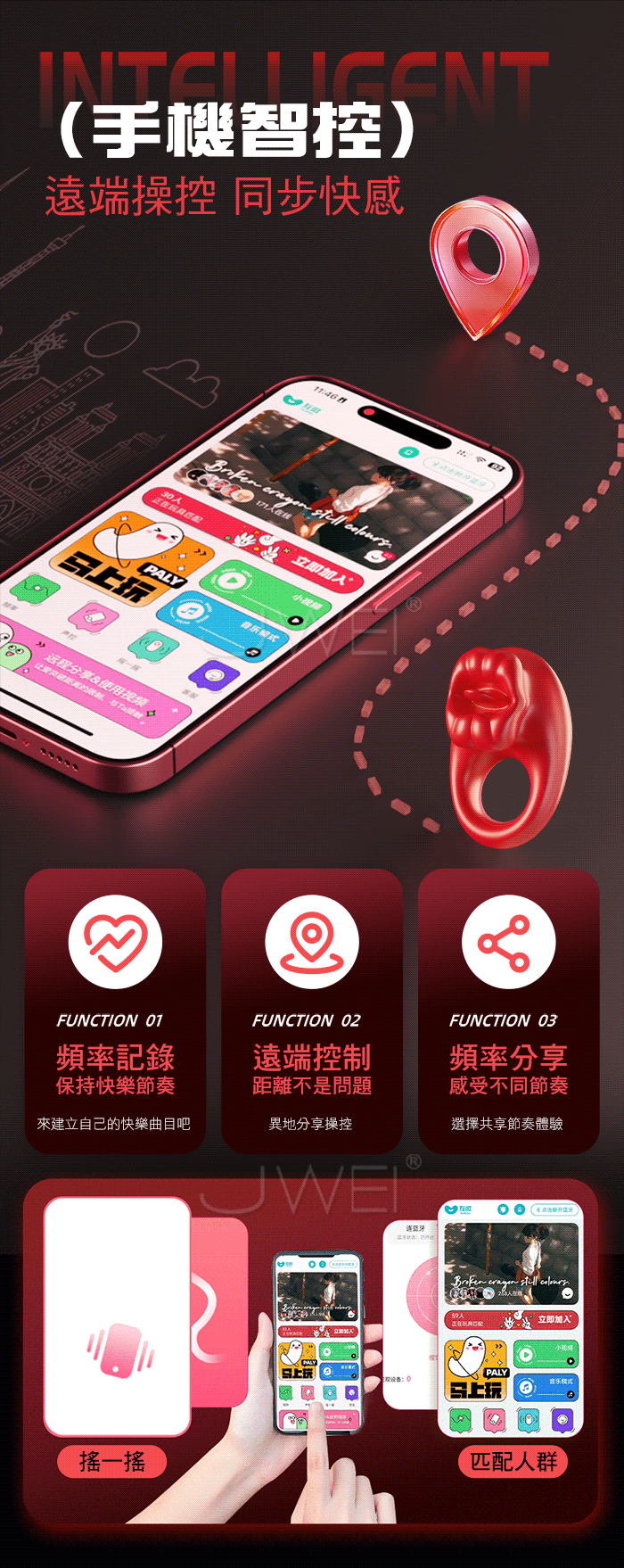 ►您現在的位置:首頁>GALAKU.烈焰紅唇 10頻酥麻強震 邊啪邊震 APP智控震動鎖精環