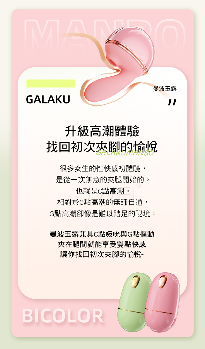 | GALAKU.曼波玉露 10頻靈指摳動+大口吮吸 雙潮喚起智能遠控變頻跳蛋【綠色】