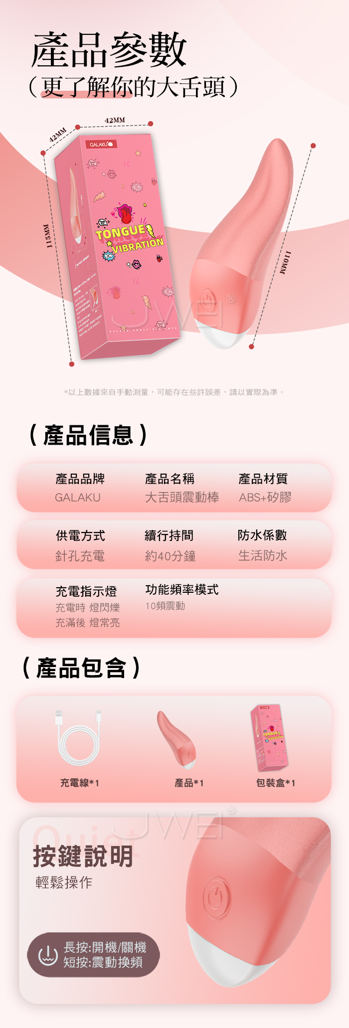 | GALAKU.大舌頭 10頻強震淺撩深舔 仿真舌頭舔震G點按摩棒