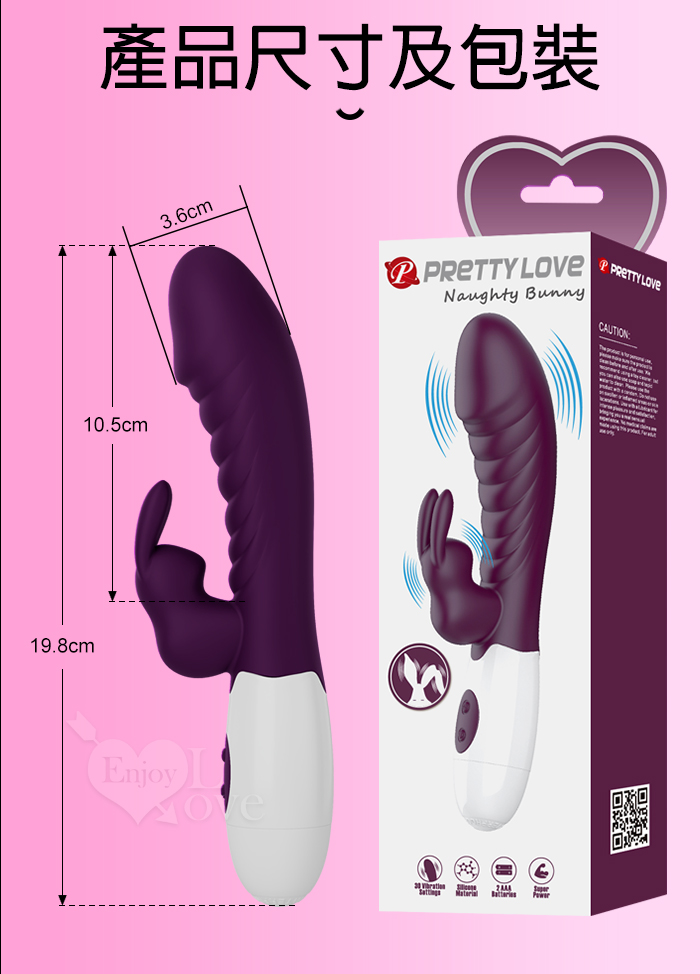 | PRETTY LOVE 派蒂菈 ‧ 頑皮兔 內外雙重30頻雙頭同震按摩棒-深紫