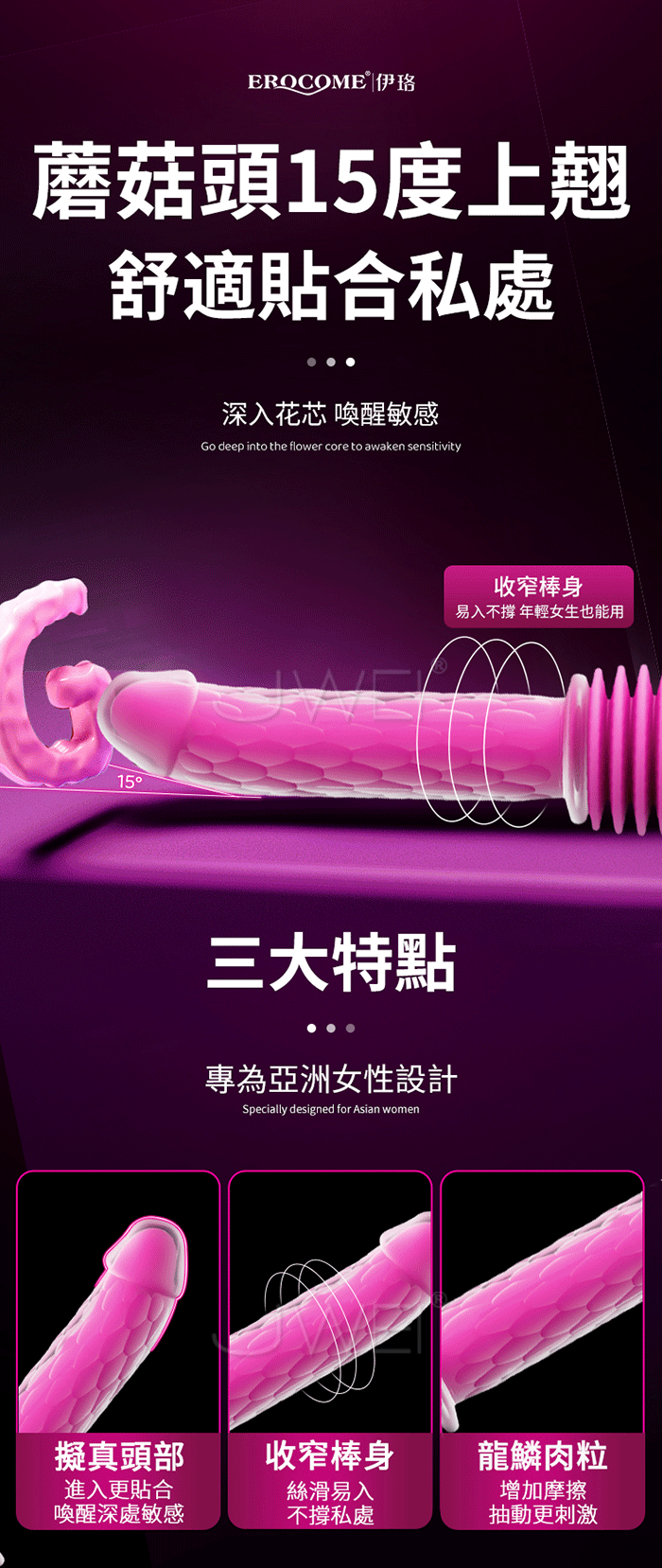 ►您現在的位置:首頁>EROCOME伊珞.CEPHEUS Pro 仙王座 3x10頻伸縮強震 仿真龜頭龍麟紋理無線遙控加溫衝擊炮機【含底座】