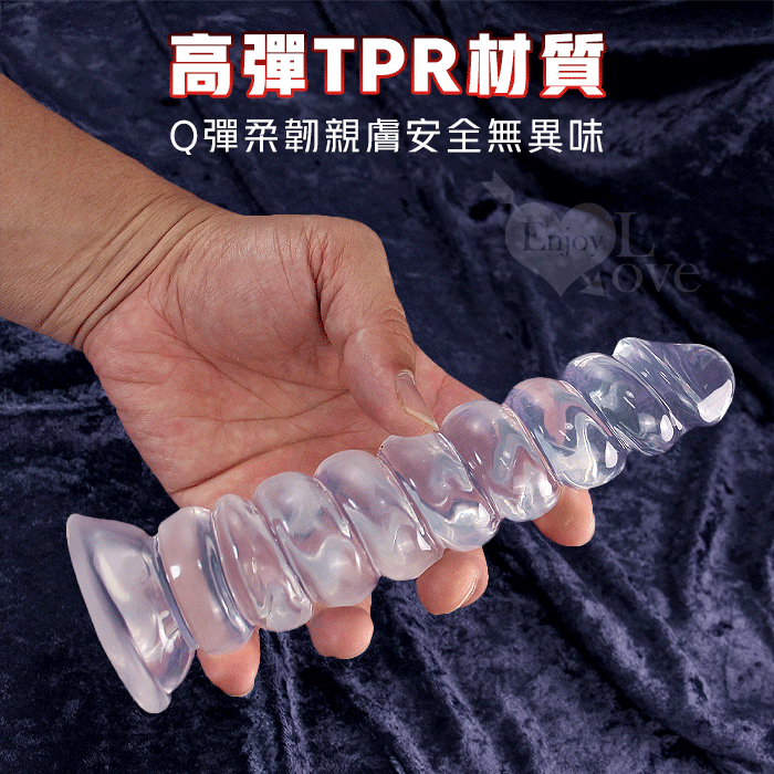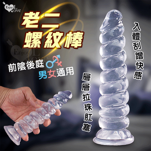 Enjoy Love ‧ 老二螺紋棒~入體刮蹭快感 吸盤按摩棒-前陰後庭男女適用﹝透明白﹞