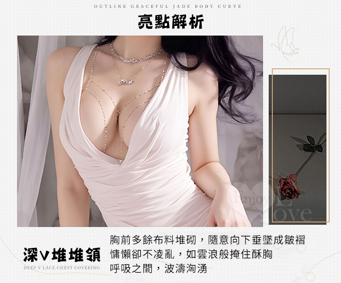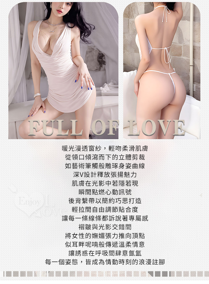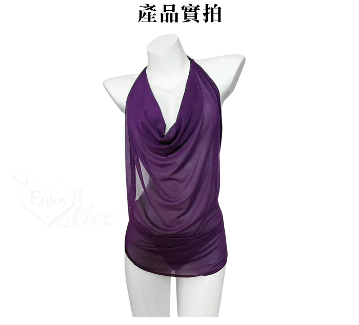 情趣睡衣!堆堆領露胸輕薄透紗綁脖後裸空繫帶兩件組﹝粉﹞