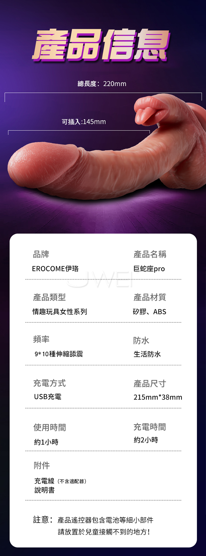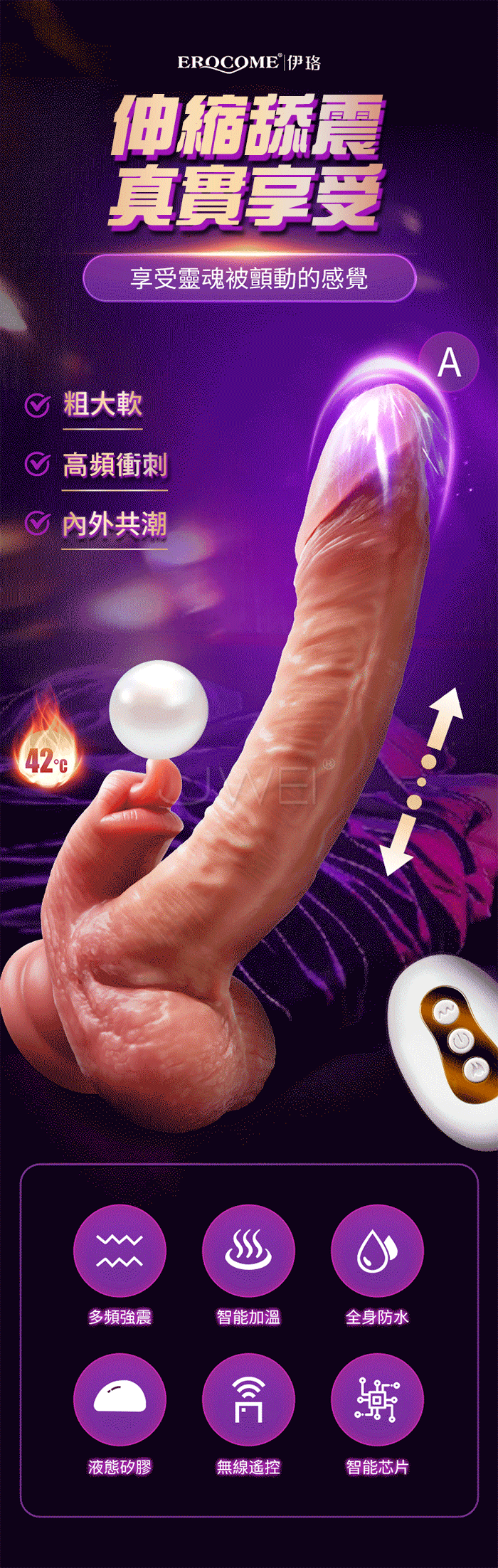 EROCOME伊珞.Serpens Pro 巨蛇座 9頻伸縮+10頻舔震 智能加溫遙控逼真肉感電動老二棒