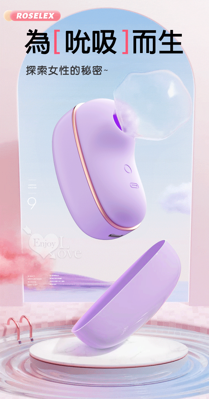 ROSELEX 勞樂斯 ‧ 蜜吻圓舔款~10頻酥震+舌撩+吮吸三合一組合按摩器﹝時尚耳機盒+USB充電﹞紫