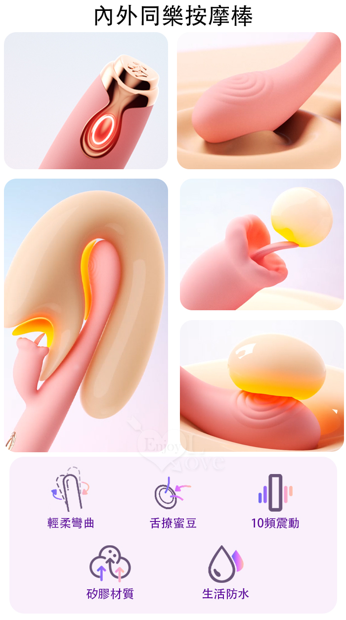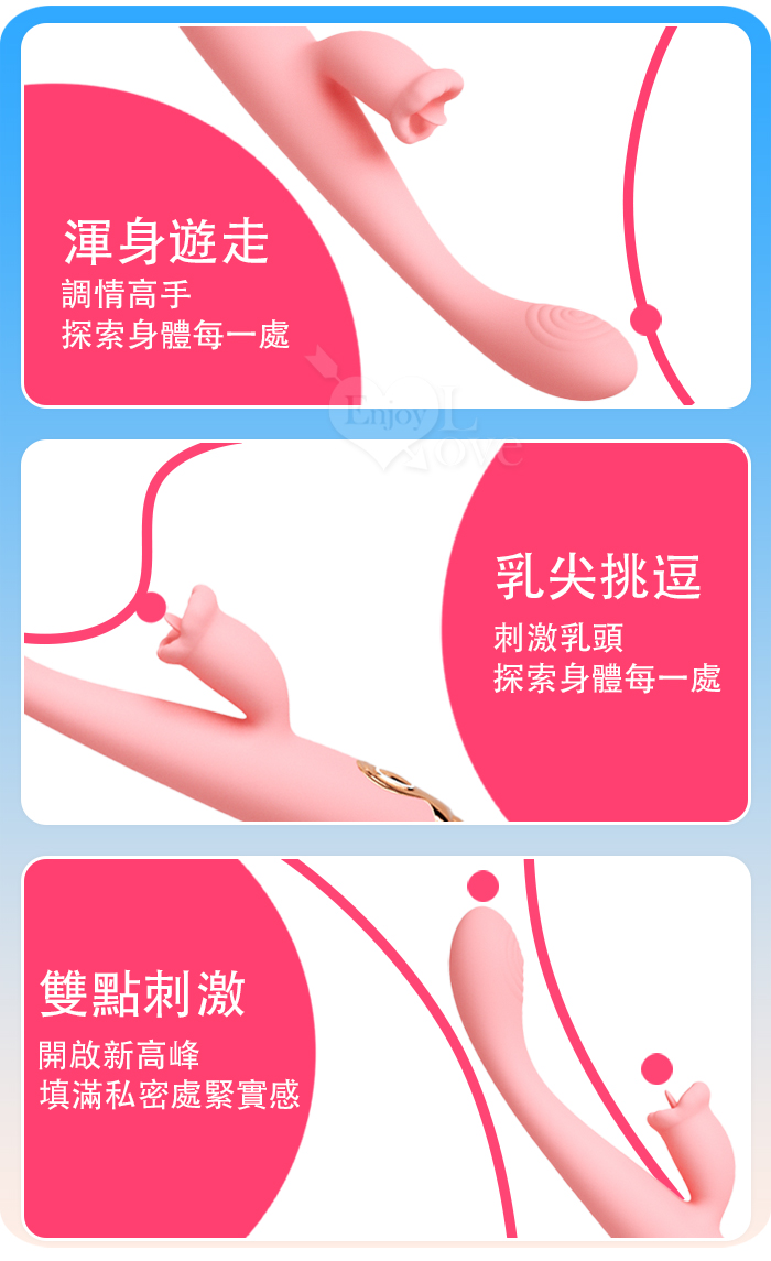 ROSELEX 勞樂斯 ‧ 潮趣 內外同樂雙刺激點按摩棒﹝舌撩刺激+舒適矽膠+USB充電﹞