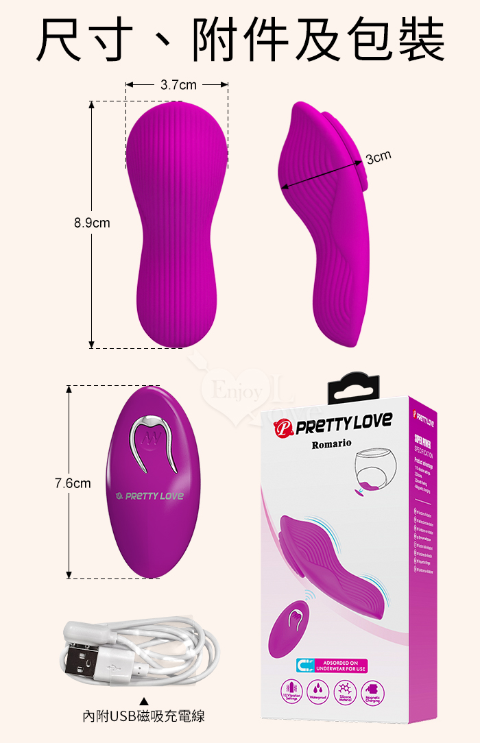 派蒂菈 ‧ Romario 無線遙控 磁吸固定內褲輕薄隱形護墊造型按摩器﹝一機雙控/10頻強震/螺紋刺激/舒適矽膠/磁吸充電﹞