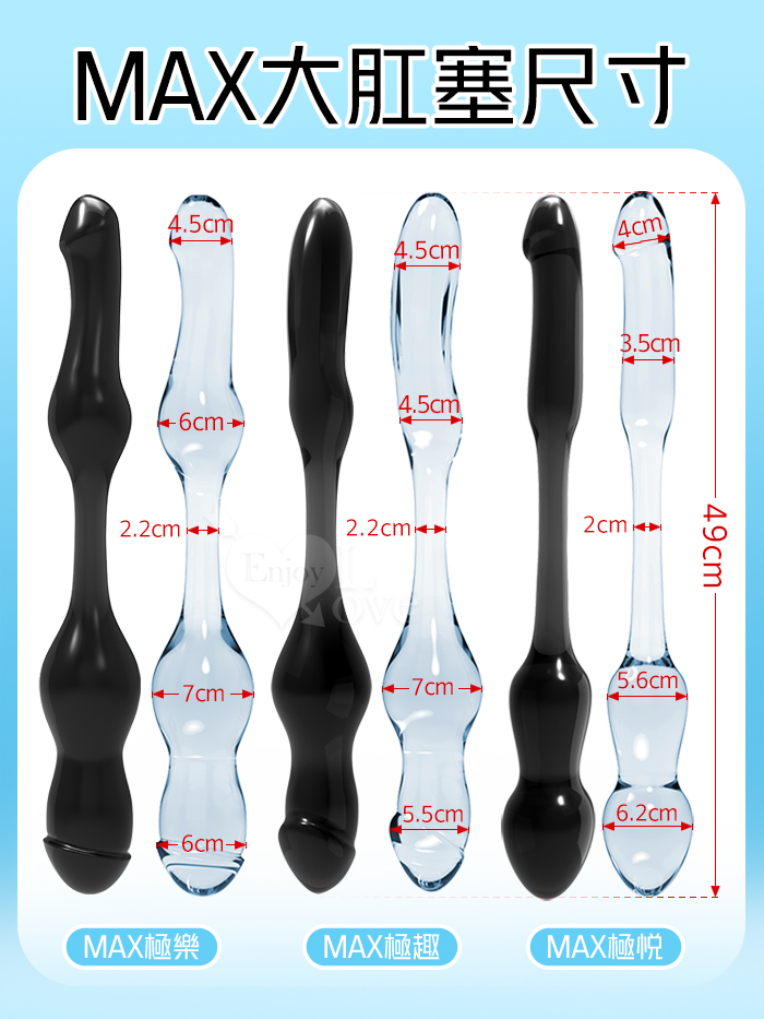 取悅 ‧ MAX極悅!XL巨大型雙頭共用水晶按摩棒-前陰後庭/男女皆適用﹝透明黑﹞