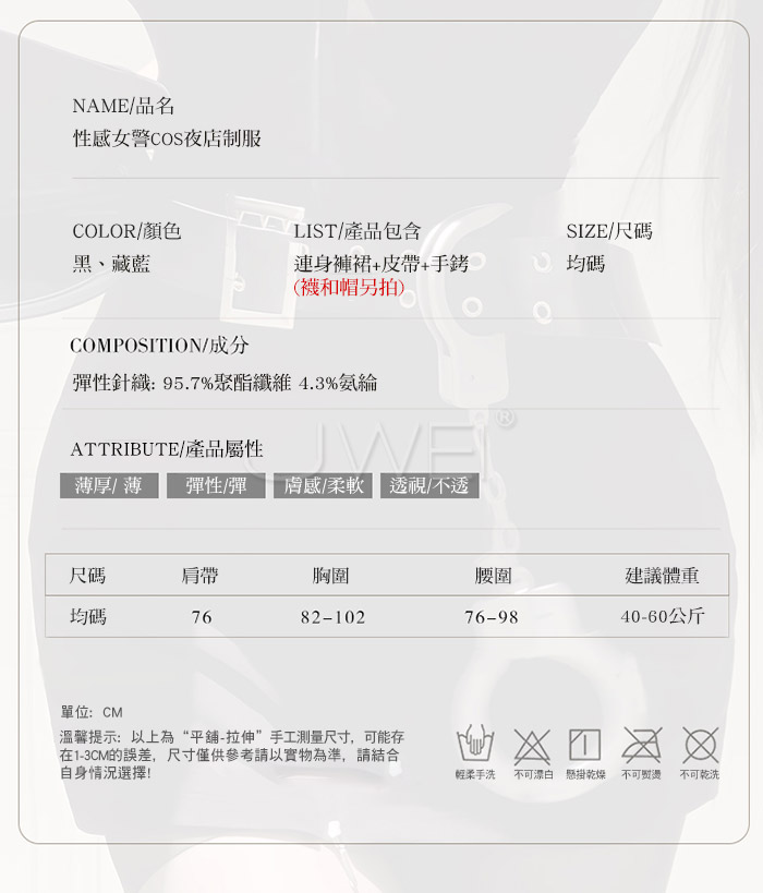 ►您現在的位置:首頁>魅影警司.制惑拉鍊調節開胸性感貼身包臀女警套裝-藏藍色【連身褲裙+皮帶+手銬】