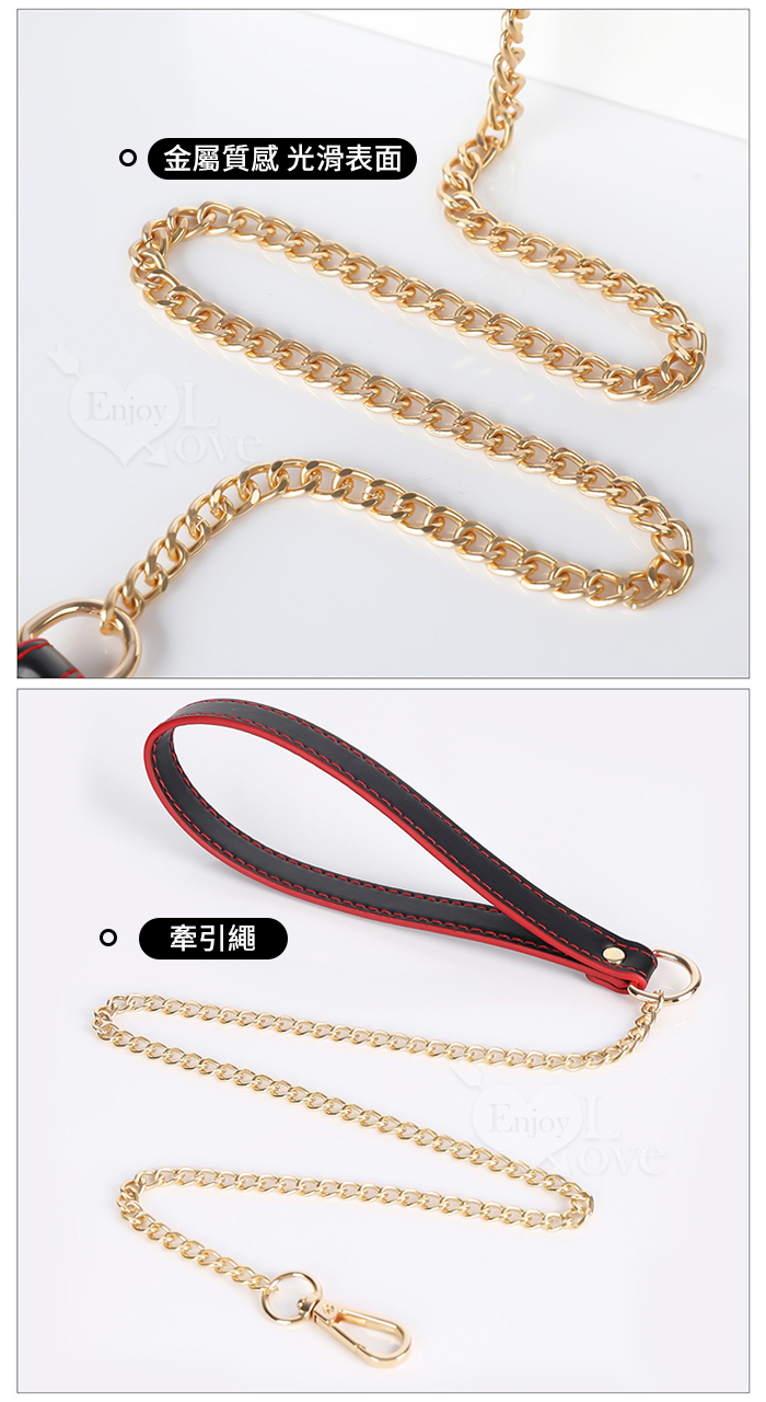 SM 刑奴扮演 ‧ 黑紅色真皮項圈+牽引繩~金屬粗鐵鏈組合