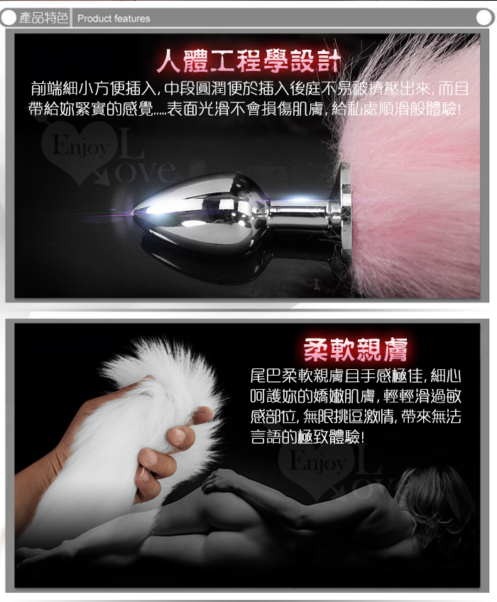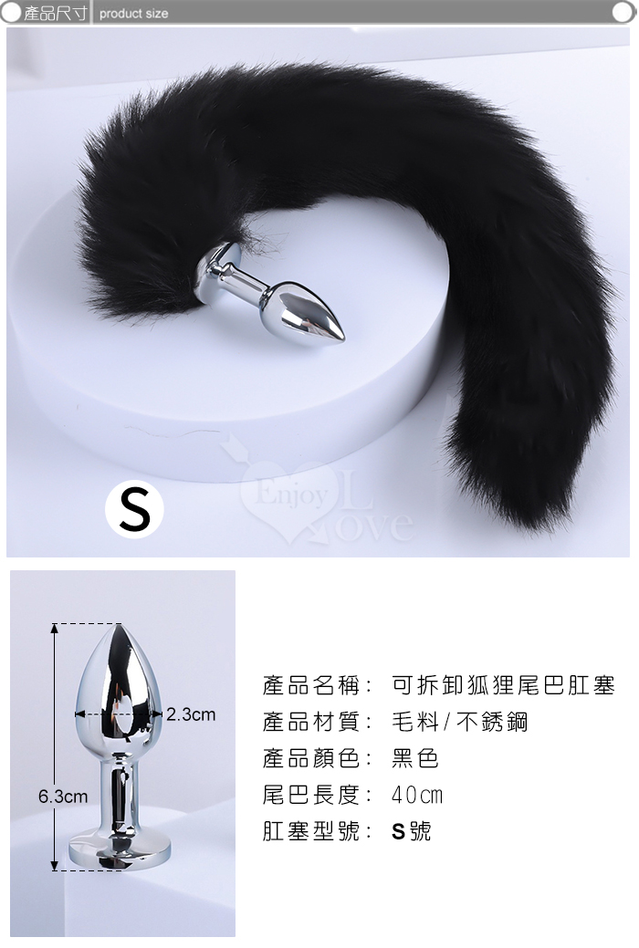 激性扮演狐狸精 ‧ 不銹鋼後庭肛塞+尾巴毛 - 黑﹝S 可組裝拆卸﹞