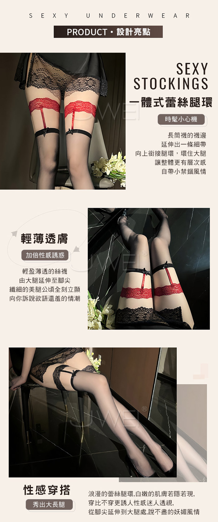 慾情誘惑.法式蕾絲花邊 蝴蝶結腿環長筒過膝絲襪【白】