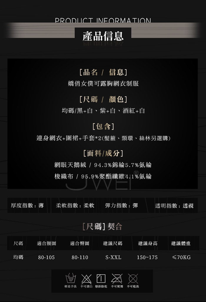 ►您現在的位置:首頁>嬌俏女僕.火辣條紋露胸可撕網衣女樸套裝-酒紅【連身網衣+圍裙+手套*2】