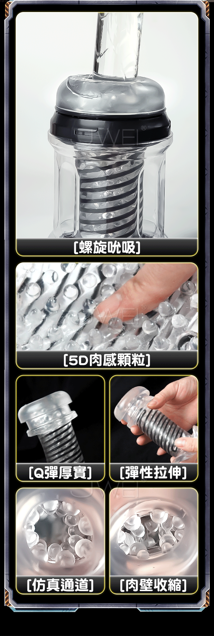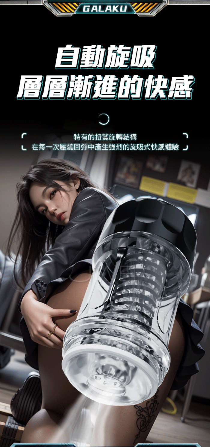 啞鈴旋轉飛機杯,自動旋吸運動延時降,層層遞進的快感! 特有的扭簧旋轉結構,在每一次壓縮回彈中產生強烈的旋吸式快感體驗 肉厚飽滿觸感新升级,5D仿真肉感軟嫩厚肉威緊密包裹,澎湃體驗,無限快感 產品規格 ■材質: 矽膠+ABS ■規格: 詳如圖片標示 ■功能: 旋吸、負壓、降敏鍛煉