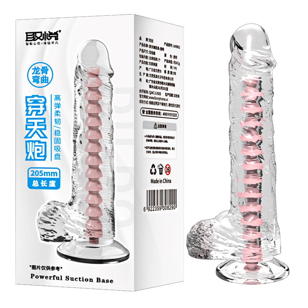 ►您現在的位置:首頁>取悅 穿天炮龍骨彎曲透明吸盤按摩棒
