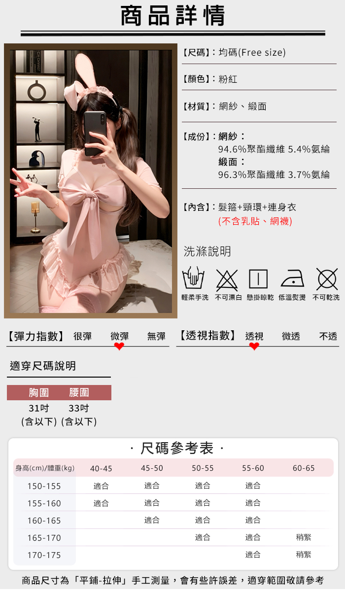 | 兔女郎角色扮演服!鋼圈托乳蝴蝶結高衩波點蕾絲開襠連身衣三件組