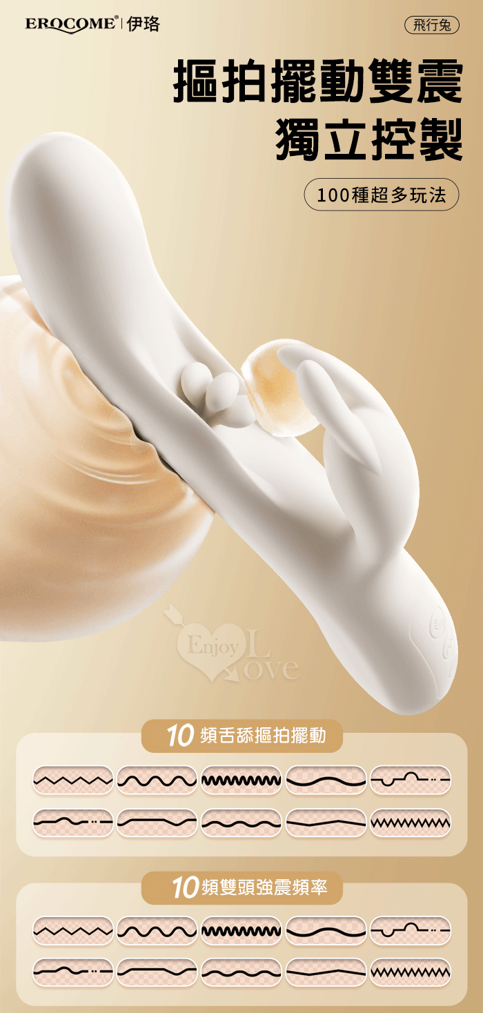 | EROCOME伊珞.Flying Bunny 飛行兔 10x10頻飛輪軟舌兔耳震動拍打雙震加溫3合1按摩棒